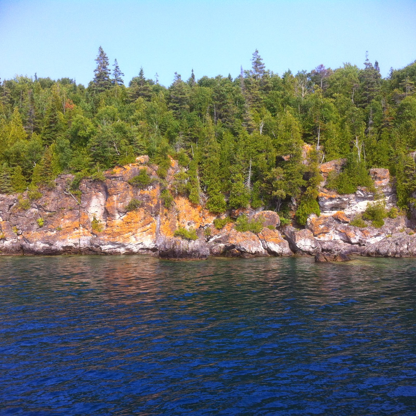 Some of the most awe-inspiring escarpment outcroppings can be found on the way up to and around Tobermory. This geological awesomeness coupled with its historical position as a major intersection for Great Lakes shipping means there are also lotsa shipwrecks as well. The islands that congregate at the " Tip of the Bruce " are all gathered into a national park known as Fathom Five National Park. It's a major mecca for divers for those two reasons. It's also the southern terminus for "The Chi Cheemaun" the ferry that travels to Manitoulin Island three times daily from April til almost November. It winters here in Owen Sound harbour each year. Chi Cheemaun is an aboriginal name that translates to " big canoe ".